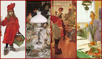 Nous approchons du solstice d'hiver, qui sera cette année le 22 décembre à 6 h 29, c'est très précis. A cette occasion et à quelques jours de Noël pourquoi pas parler de cet artiste. Attirée très jeune par ce tendre et coloré univers de Carl LARSSON, les scènes d'hiver dans les jardins. Nous y retrouvons le bien être familial.